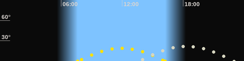 | Höchster Sonnenstand (Kulmination) | 11:56 Uhr (h = 19.1°) |