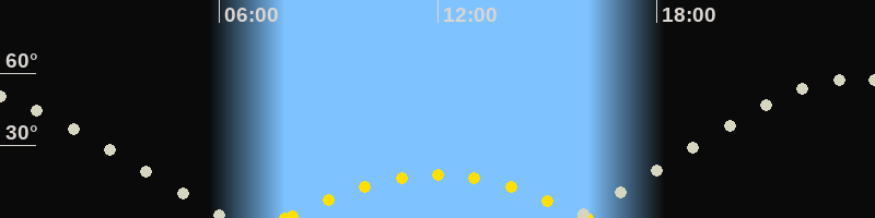 | Höchster Sonnenstand (Kulmination) | 11:58 Uhr (h = 17.8°) |