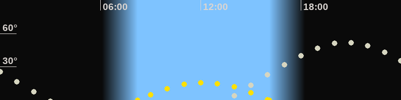 | Höchster Sonnenstand (Kulmination) | 12:10 Uhr (h = 15.9°) |