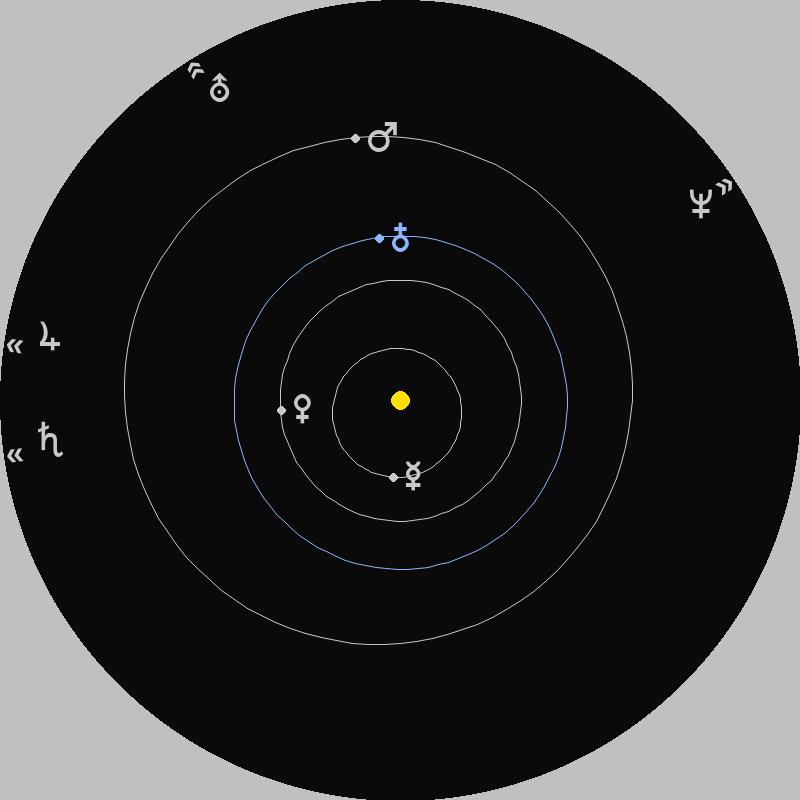 | Beobachtbarkeit der Planeten 29.12.2039 | ||