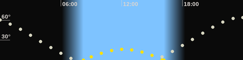 | Höchster Sonnenstand (Kulmination) | 12:12 Uhr (h = 16.1°) |