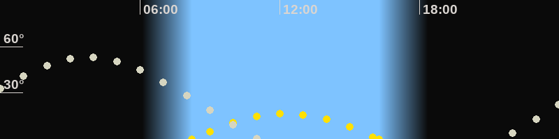 | Höchster Sonnenstand (Kulmination) | 12:14 Uhr (h = 16.5°) |