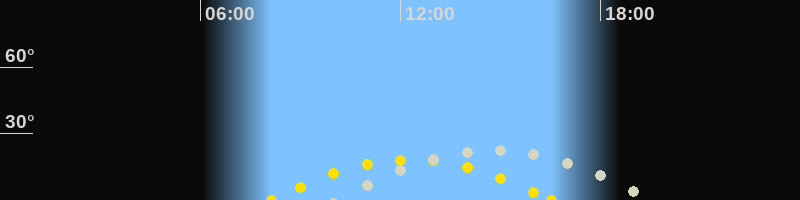 | Höchster Sonnenstand (Kulmination) | 12:19 Uhr (h = 18.3°) |