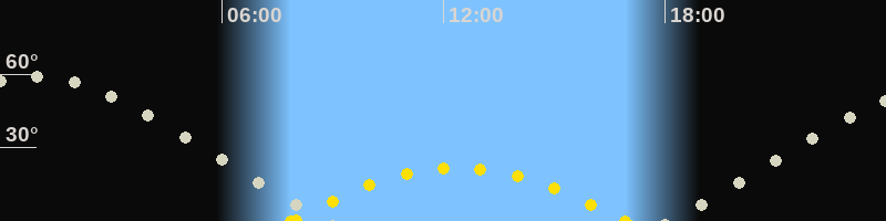 | Höchster Sonnenstand (Kulmination) | 12:23 Uhr (h = 21.6°) |