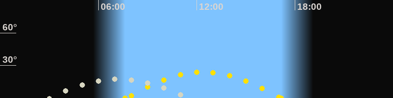 | Höchster Stand (Kulmination) | 07:15 Uhr (h=17.7°) |