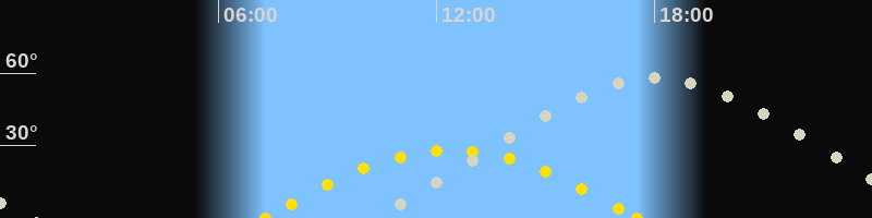 | Höchster Sonnenstand (Kulmination) | 12:24 Uhr (h = 28°) |