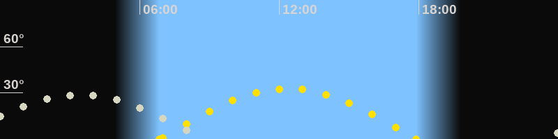 Mondaufgang23:21 Uhr im Südosten (αAz = 112.9°)