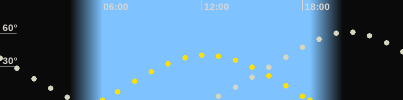 Höchster Stand (Kulmination)20:45 Uhr (h=61.6°)
