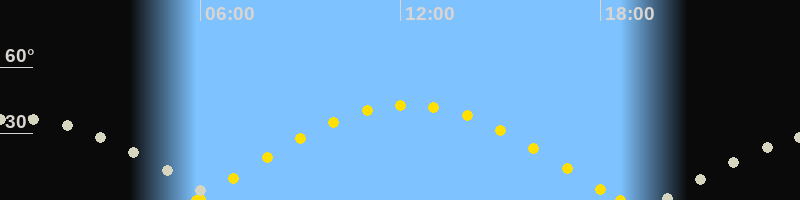 Höchster Sonnenstand (Kulmination)12:14 Uhr (h = 43°)
