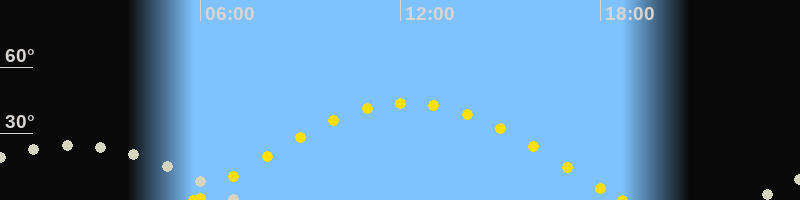 Höchster Sonnenstand (Kulmination)12:14 Uhr (h = 43.8°)