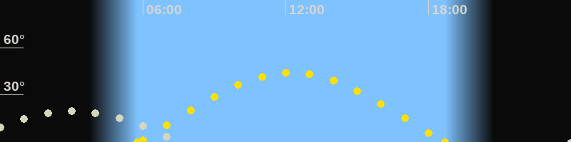 | Höchster Sonnenstand (Kulmination) | 12:13 Uhr (h = 44.2°) |