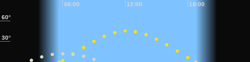 | Sonnenaufgang | 05:40 Uhr im Osten (αAz = 79.9°) |