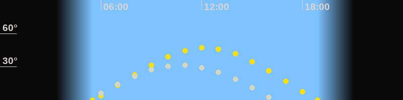 | Höchster Sonnenstand (Kulmination) | 12:11 Uhr (h = 47.2°) |