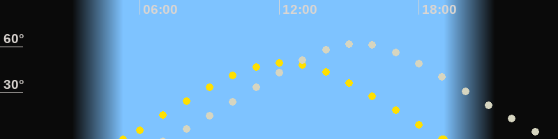 | Sonnenaufgang | 05:16 Uhr im Osten (αAz = 73.4°) |