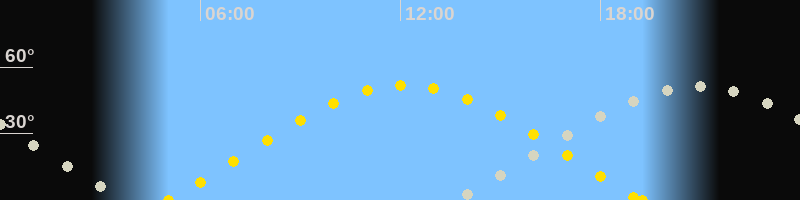 | Sonnenaufgang | 05:02 Uhr im Osten (αAz = 69.4°) |