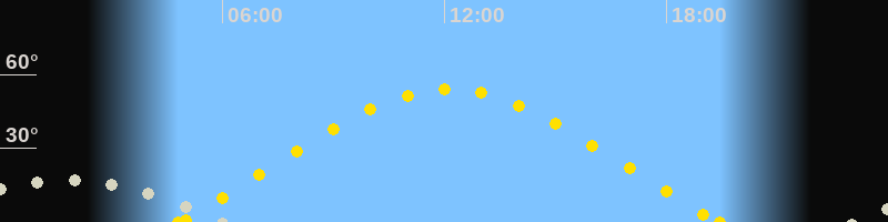 | Höchster Sonnenstand (Kulmination) | 12:07 Uhr (h = 54°) |