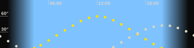 | Höchster Sonnenstand (Kulmination) | 12:06 Uhr (h = 59.6°) |