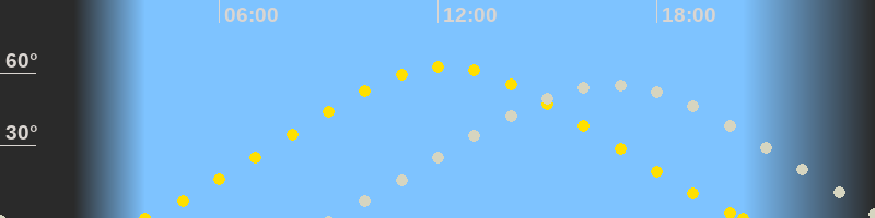 | Höchster Sonnenstand (Kulmination) | 12:10 Uhr (h = 62.6°) |