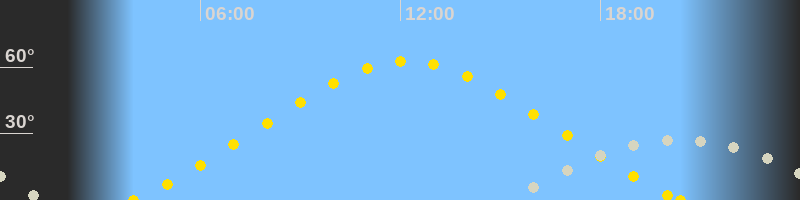 | Höchster Sonnenstand (Kulmination) | 12:12 Uhr (h = 62.7°) |