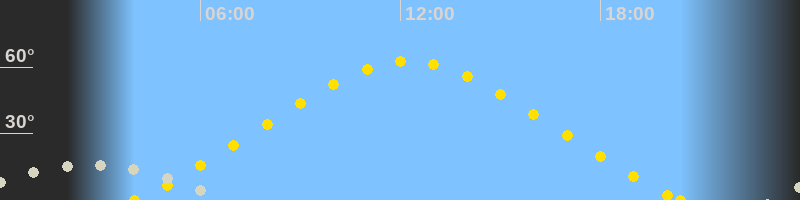 | Höchster Sonnenstand (Kulmination) | 12:13 Uhr (h = 62.5°) |