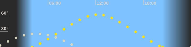 | Höchster Sonnenstand (Kulmination) | 12:13 Uhr (h = 62.4°) |