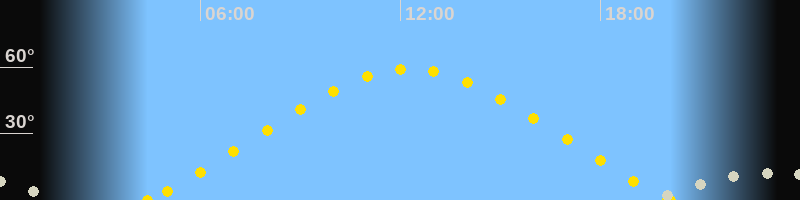 | Höchster Sonnenstand (Kulmination) | 12:16 Uhr (h = 59.4°) |