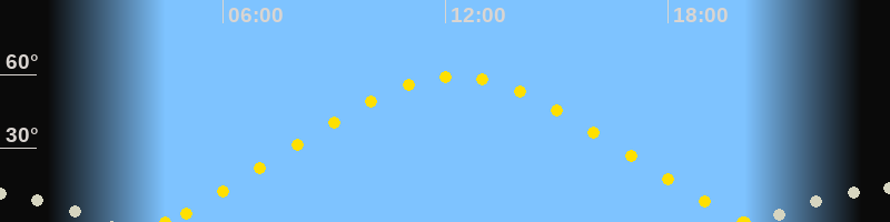 Höchster Sonnenstand (Kulmination)12:16 Uhr (h = 59.1°)