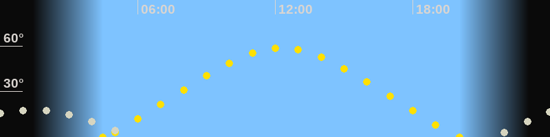| Höchster Sonnenstand (Kulmination) | 12:16 Uhr (h = 58.7°) |