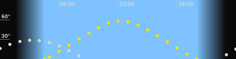 | Höchster Sonnenstand (Kulmination) | 12:16 Uhr (h = 58.3°) |