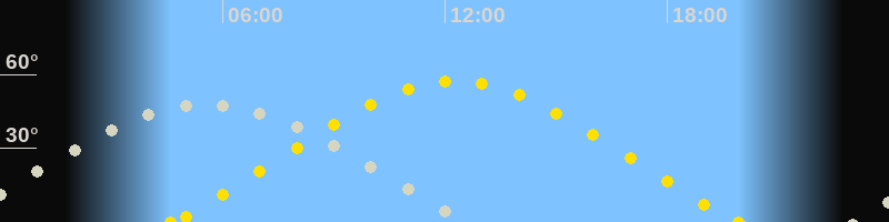 | Höchster Sonnenstand (Kulmination) | 12:16 Uhr (h = 57.5°) |
