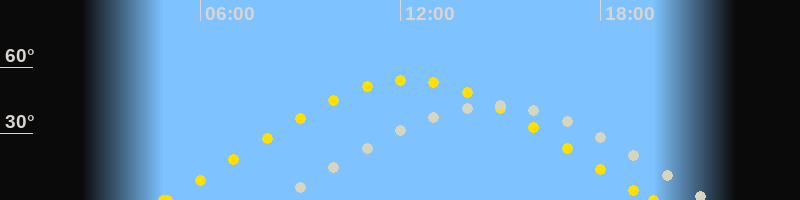 | Höchster Sonnenstand (Kulmination) | 12:15 Uhr (h = 54.3°) |