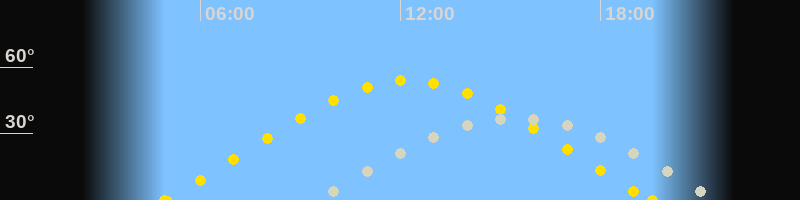 | Höchster Sonnenstand (Kulmination) | 12:15 Uhr (h = 54°) |