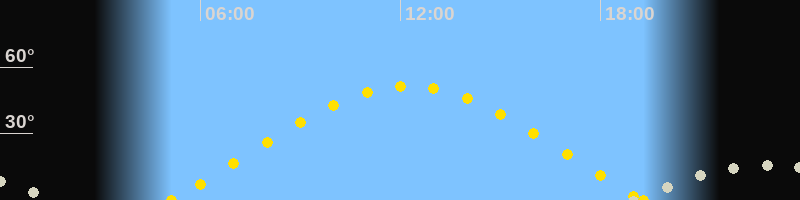 | Sonnenaufgang | 05:08 Uhr im Osten (αAz = 69.7°) |