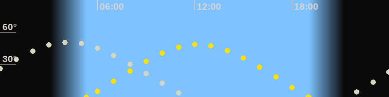 Höchster Sonnenstand (Kulmination)12:11 Uhr (h = 49°)