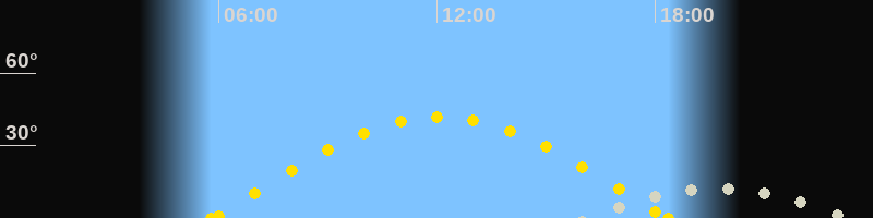 | Sonnenaufgang | 05:47 Uhr im Osten (αAz = 84.9°) |
