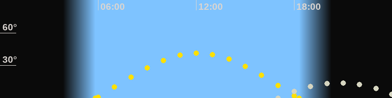 Höchster Sonnenstand (Kulmination)12:04 Uhr (h = 41.6°)
