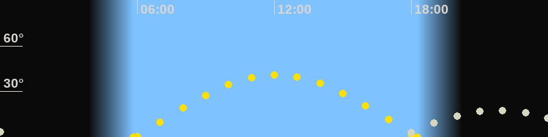 | Sonnenuntergang | 18:16 Uhr im Westen (αAz = 273.6°) |