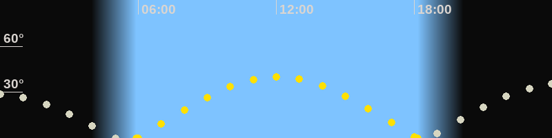 | Höchster Sonnenstand (Kulmination) | 12:03 Uhr (h = 40°) |