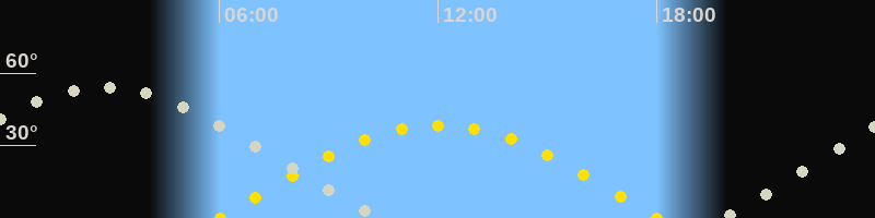 | Sonnenuntergang | 18:00 Uhr im Westen (αAz = 269.3°) |