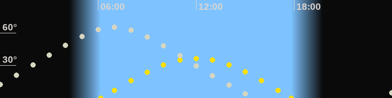 | Höchster Sonnenstand (Kulmination) | 12:00 Uhr (h = 36.5°) |