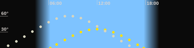 | Sonnenaufgang | 06:12 Uhr im Osten (αAz = 94.7°) |