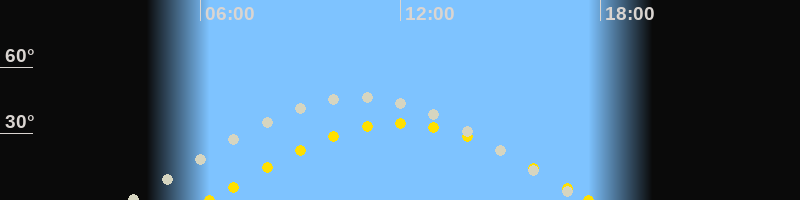 | Sonnenaufgang | 06:17 Uhr im Osten (αAz = 96.6°) |