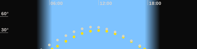 | Sonnenaufgang | 06:19 Uhr im Osten (αAz = 97.2°) |
