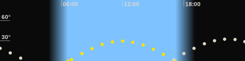 | Höchster Sonnenstand (Kulmination) | 11:55 Uhr (h = 29.7°) |