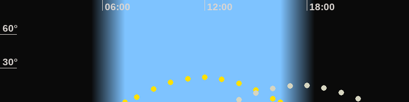 | Sonnenaufgang | 07:19 Uhr im Südosten (αAz = 117.3°) |