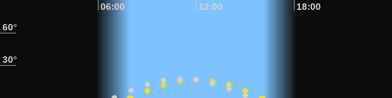 | Höchster Sonnenstand (Kulmination) | 12:00 Uhr (h = 17.1°) |