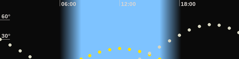 | Höchster Sonnenstand (Kulmination) | 12:05 Uhr (h = 16°) |