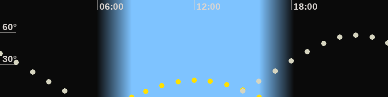 | Höchster Sonnenstand (Kulmination) | 12:05 Uhr (h = 16°) |