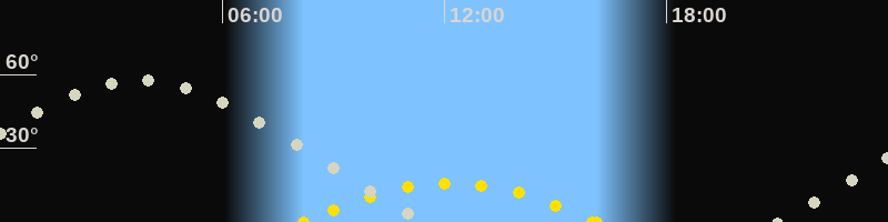 Höchster Sonnenstand (Kulmination)12:09 Uhr (h = 15.9°)