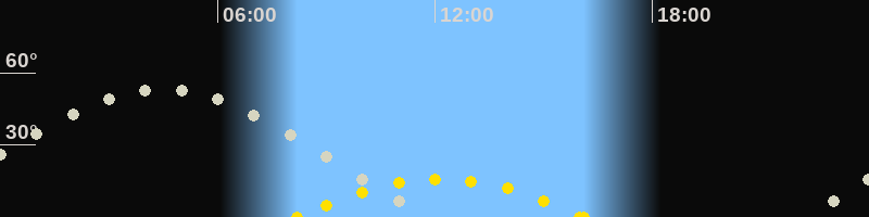 Höchster Sonnenstand (Kulmination)12:10 Uhr (h = 15.9°)